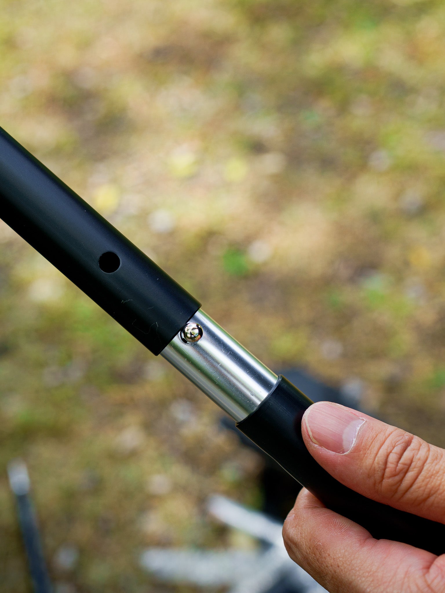 ポールは2連結&直径22mmのアルミニウム合金で、アルミよりもさらに優れた耐食性や強度があり、かつ軽量な作りになっています。