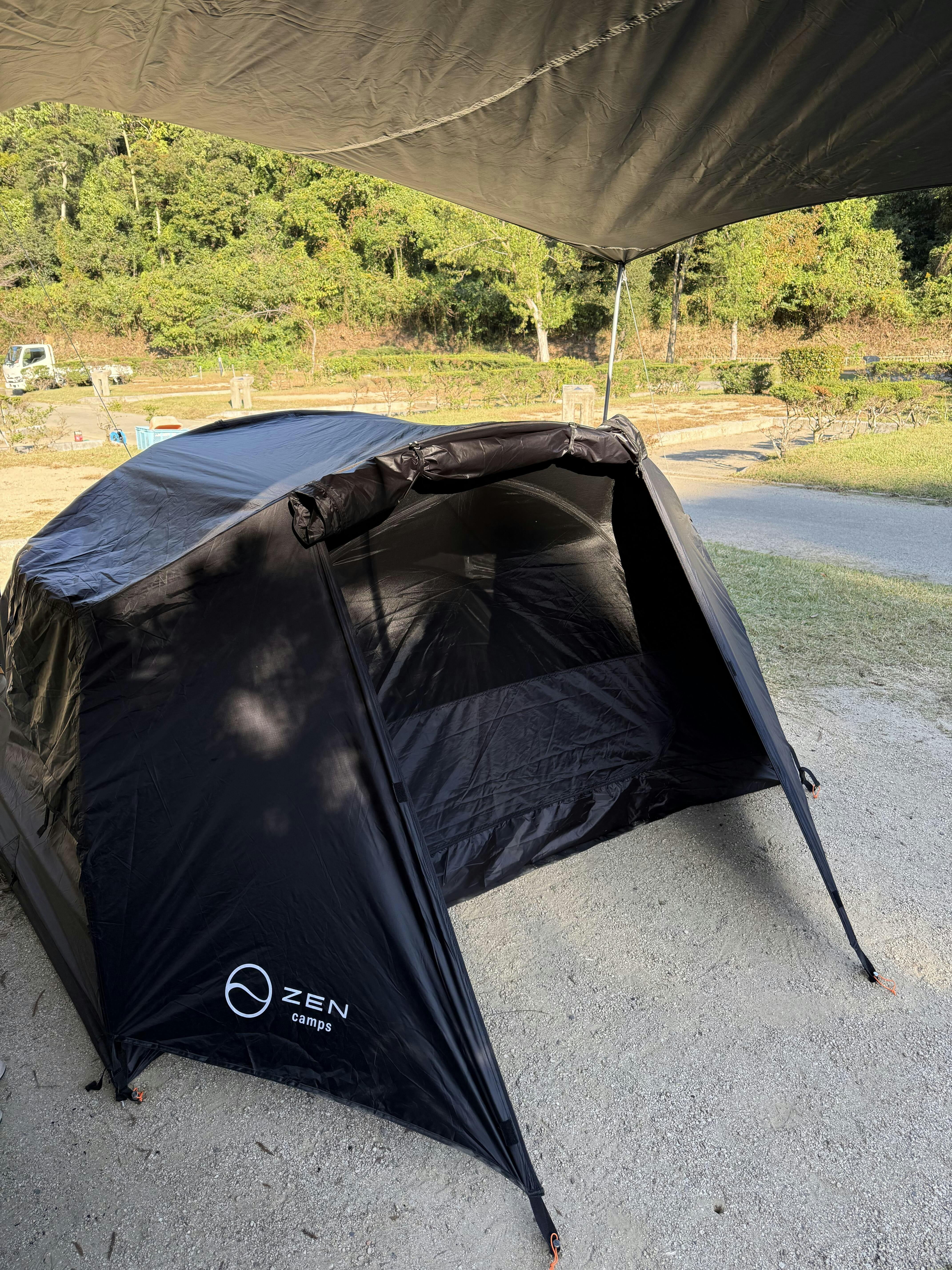 ZEN Campsらしいブラックカラーをベースに、1人で余裕のあるスペースを確保できるソロキャンパー向けのドーム型テントです。