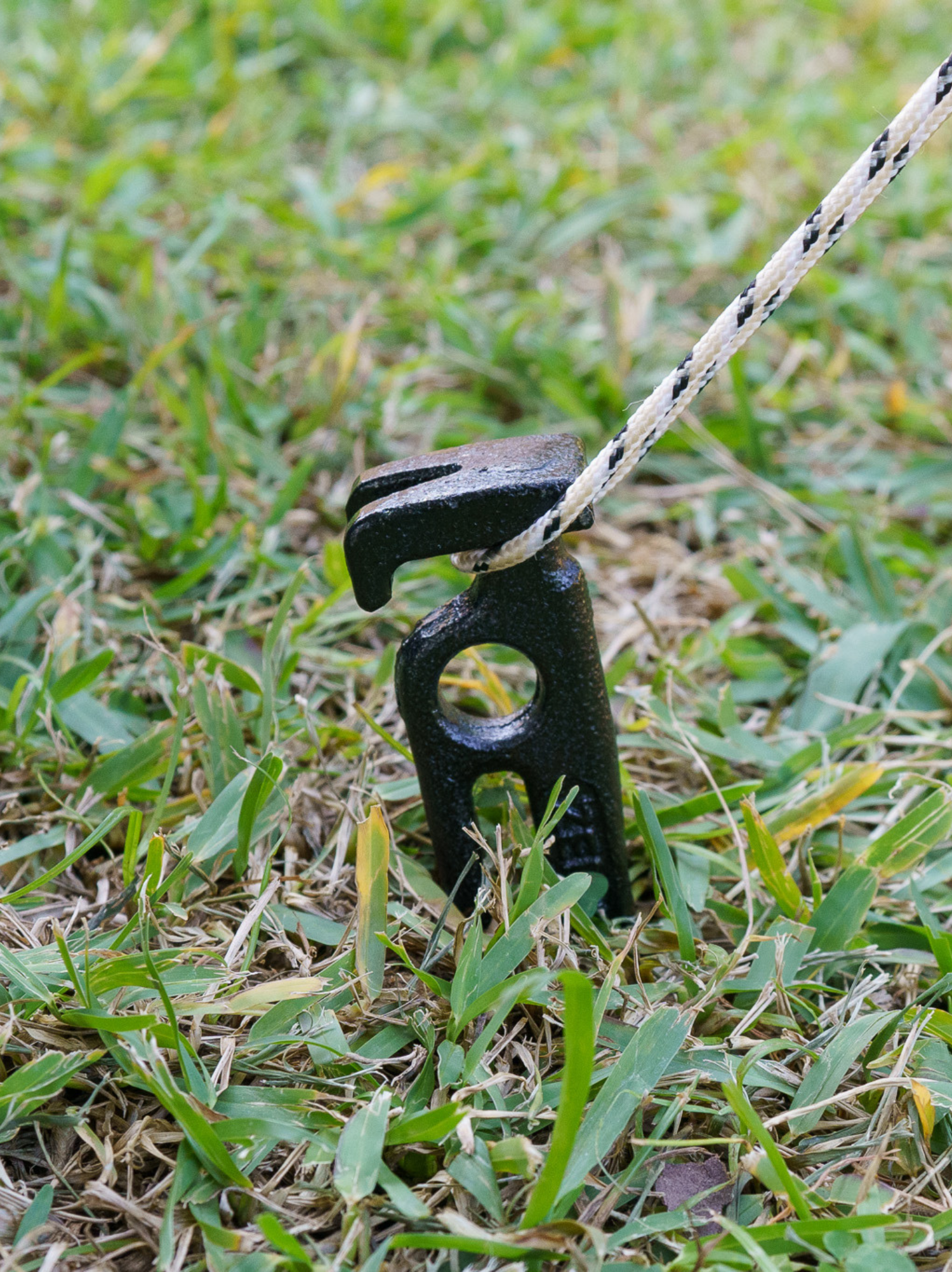 ②【独自】上部のフックにガイロープを取り付け可能(深く刺しても安心)