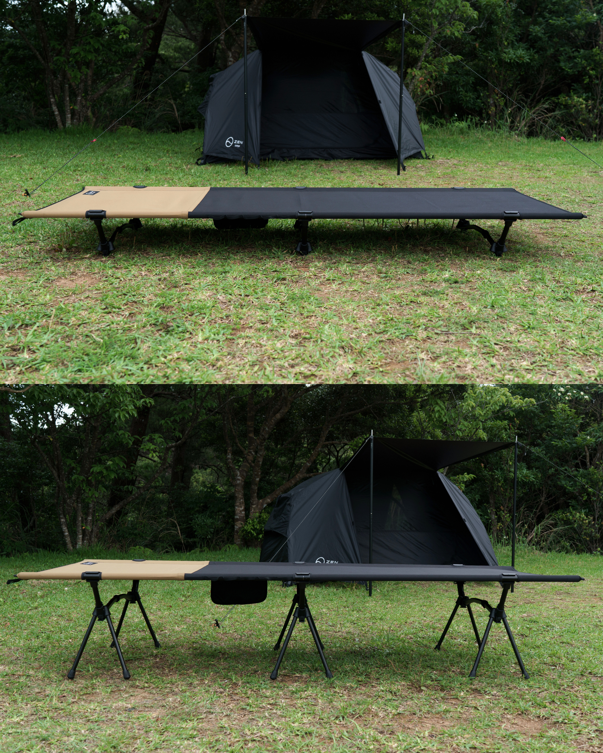 今回はZEN Campsカラーのブラックにサブカラーを加え、コットでは珍しい2レイヤーに仕上げています。