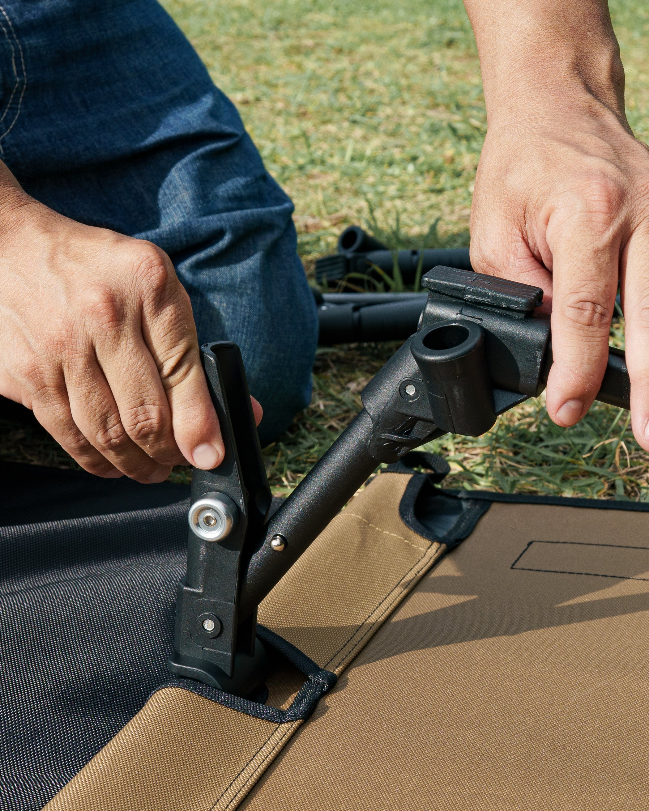 高さはロースタイル、ハイスタイルに対応し、3本脚でもしっかり生地を張れて心地良い寝心地を実現。組み立ても補助付きで力がいらないので、女性でも簡単に行えます。