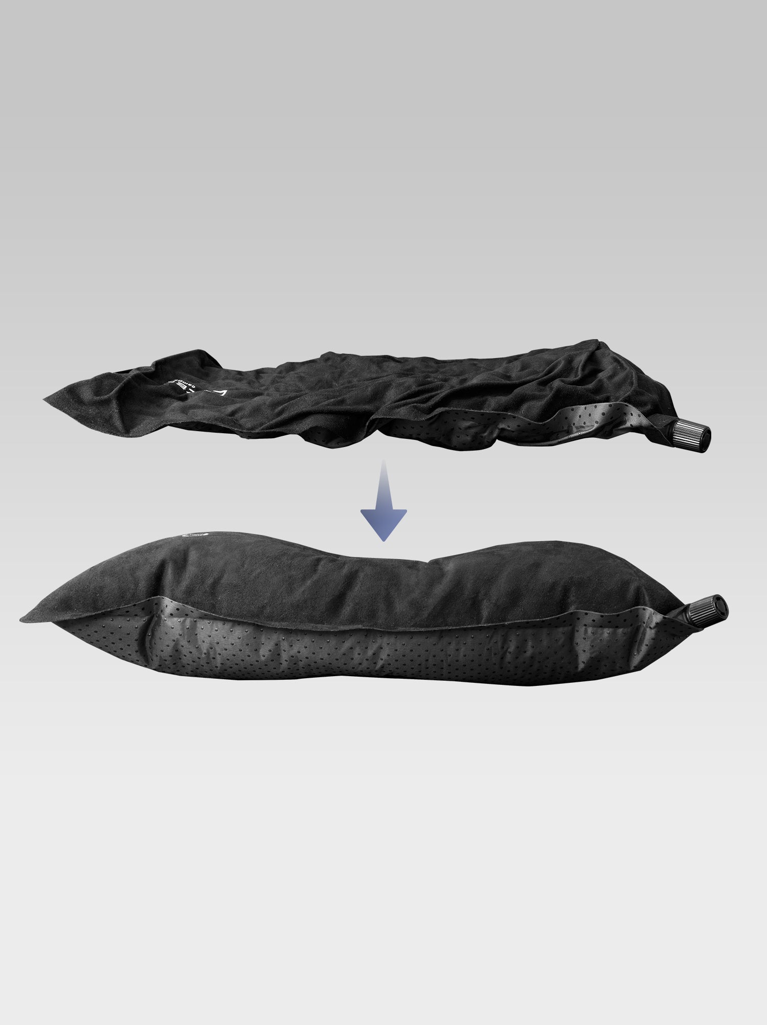 コンパクトに収納した状態からバルブを開くだけで自動で膨らんでくれる枕で、30秒もあれば十分使用できる大きさまで膨らんでくれます。