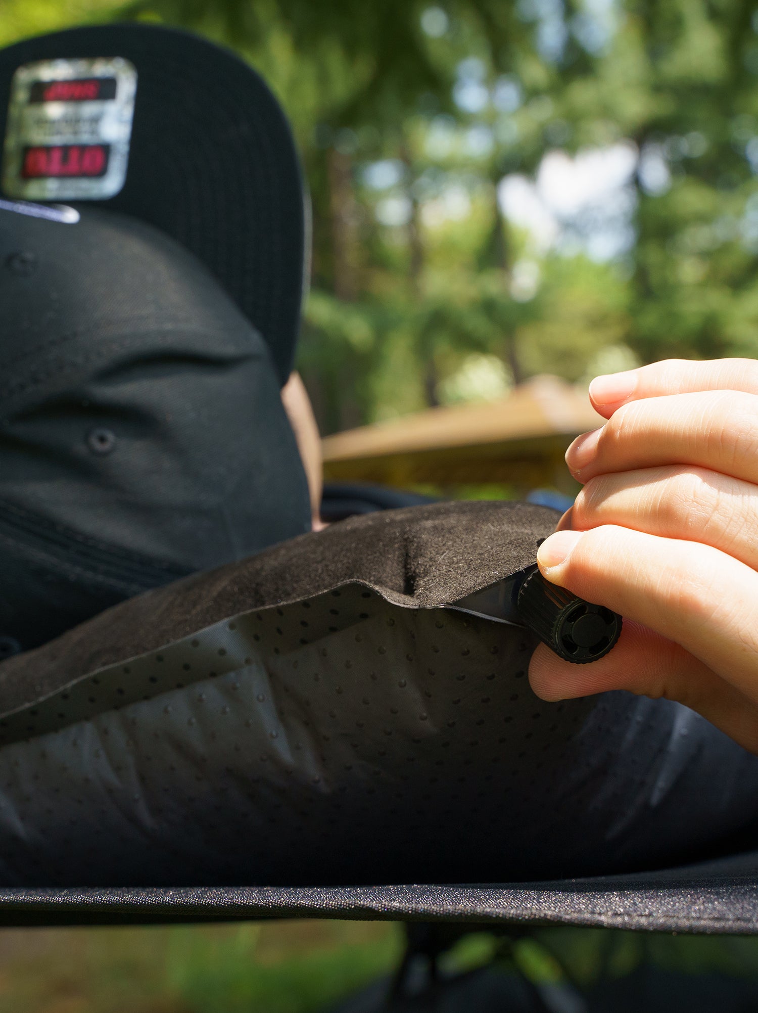 バルブに息を吹き込めばさらに倍近くまで膨らませることができ、自分好みの高さに微調整することができます。どの空気量でも程よい低反発があるためしっかりと首から上を支えてくれます。