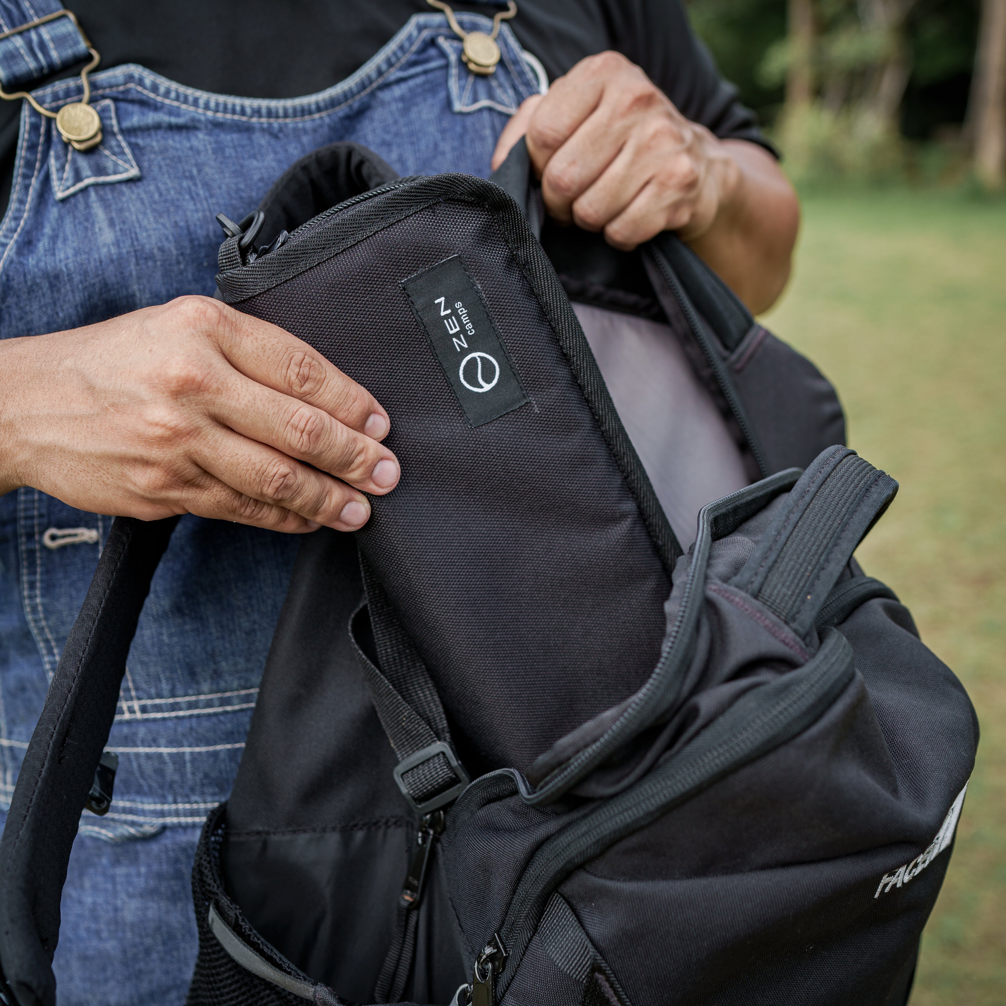 ミニポケット付きでスマホや鍵などの小物、ペットボトルなども入れておけます。