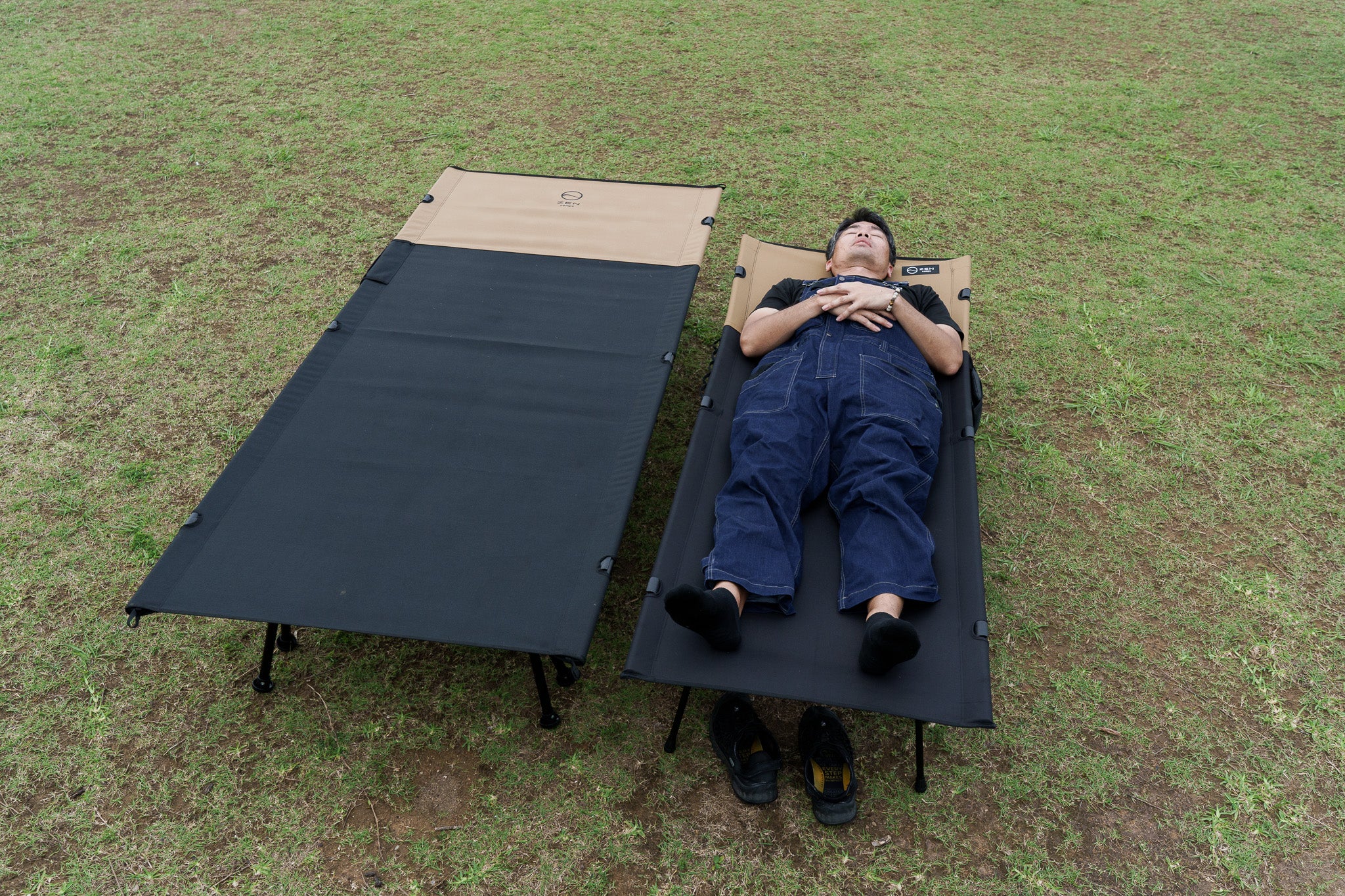 身体が大きい方は通常サイズのコットでは窮屈で寝返りするのも一苦労。