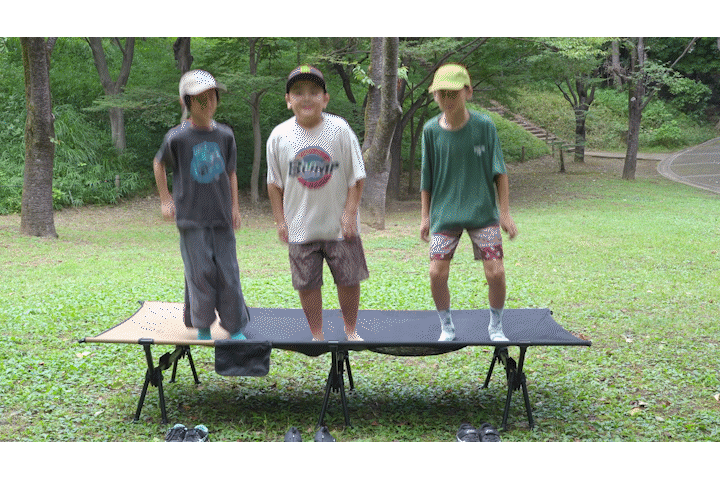 寝るだけでなく複数人で椅子にしたり、子供が飛び跳ねても壊れにくい丈夫さなので、テント外でも非常に活躍します!
