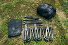ポールや脚は折りたたんで専用の収納袋に収納可能。全体の重さは約8Kgで、片手で持ち運べて車でも場所もとりません。