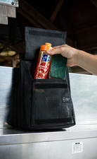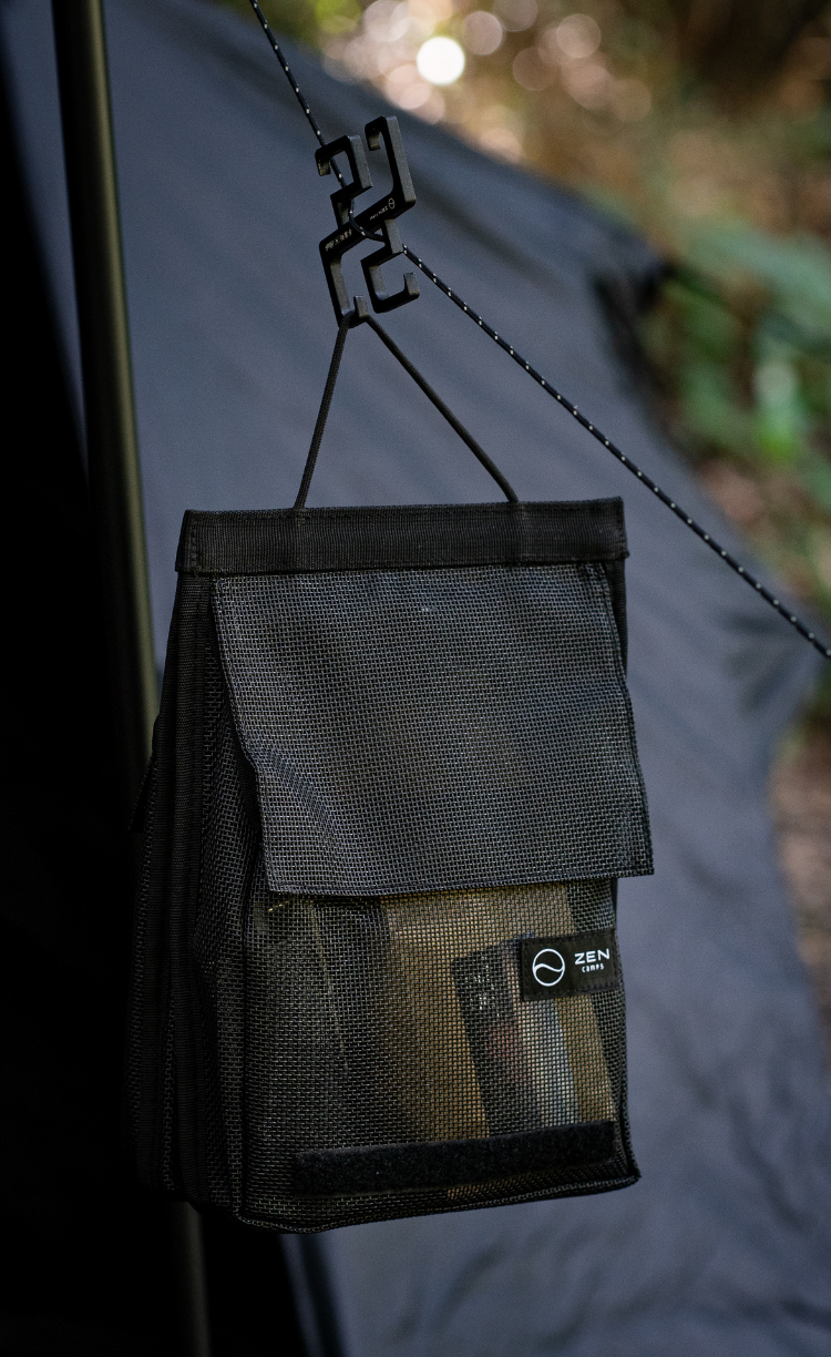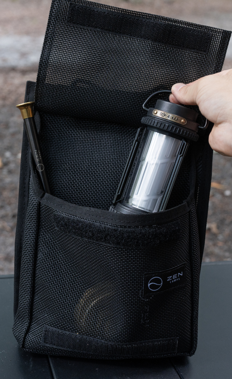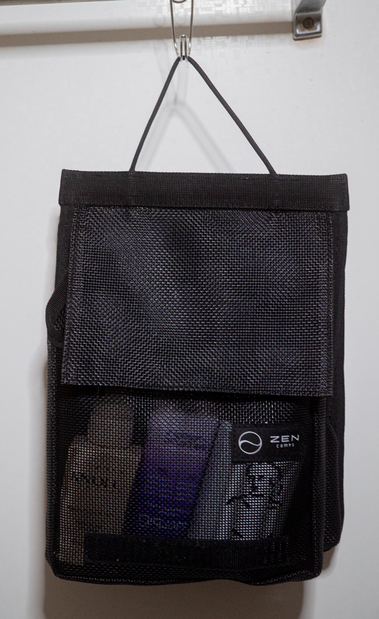 マジックテープの方はマチがついた広めのポケットになっているため、キャンプギアはもちろん、洗顔料や化粧水などのトラベル用品、洗い物に使うスポンジや洗剤、料理に使うスパイスなどあらゆるものを入れておくことができます。