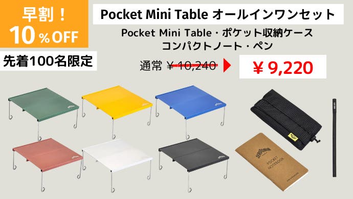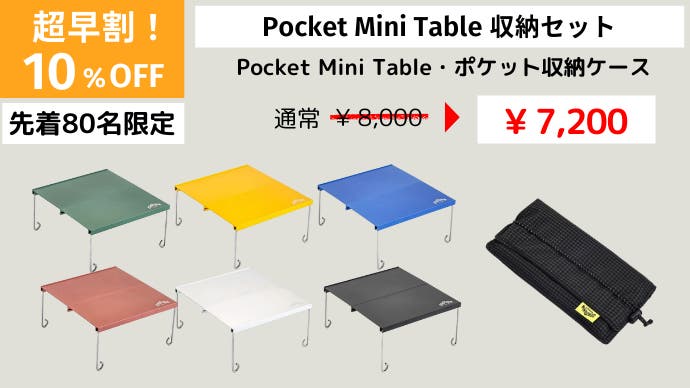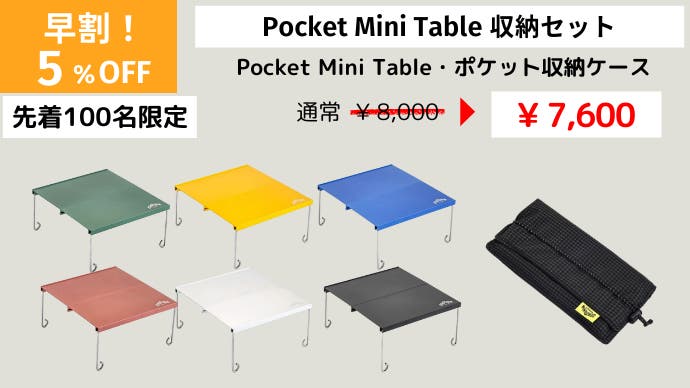 今回はテーブルがすっぽり入るポケット収納ケースもセットとなります。