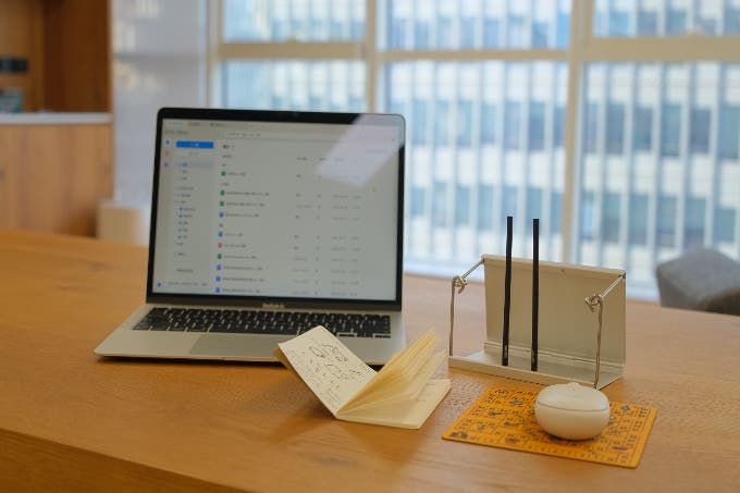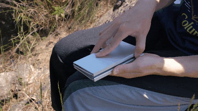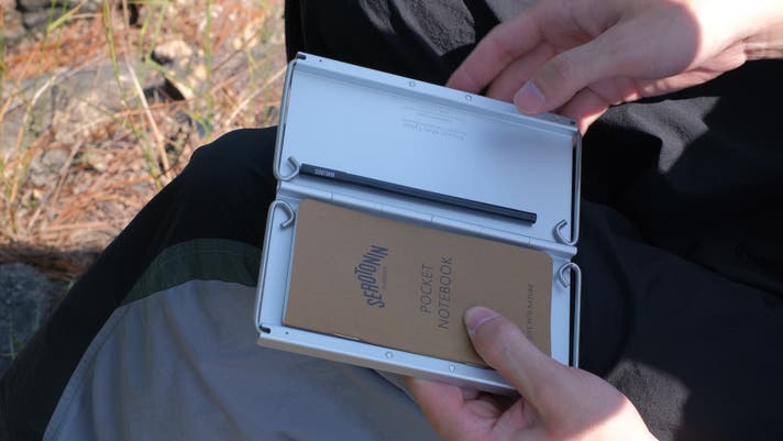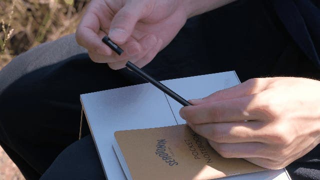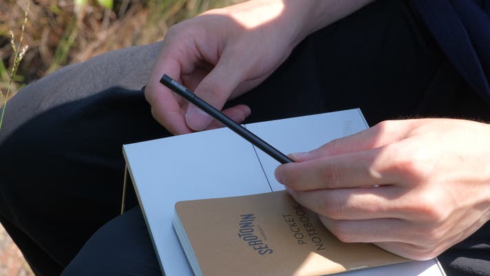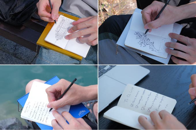 自然の中で閃いたことや、綺麗な景色を絵に残したいと思った際、すぐにテーブルの上でノートに書き残すことができます。