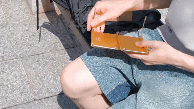 展開サイズ16cm x 15cm x 7.7cm、折りたたみサイズ15.7cm x 8.2cm、重さはわずか137gの超コンパクトな折りたたみテーブルです。