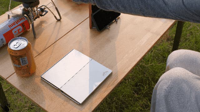 脚を展開または折りたたみ、テーブルを縦または横に配置すれば簡易的な風防としても使えます。風の強い屋外での調理に便利で、燃料と時間を節約できます。