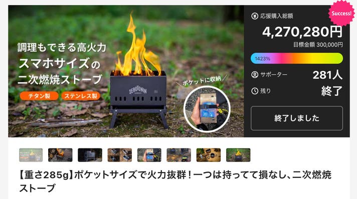 昨年Makuakeプロジェクトを実施し大きな応援購入を得た【重さ285g】掌サイズの二次燃焼焚き火台 も今回のプロジェクトで再販します!