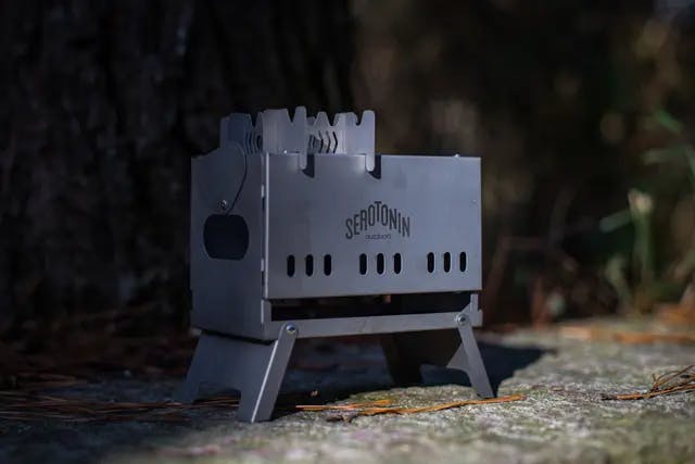 「Serotonin Titanium Camping Stove (STCS)」は超軽量・コンパクト・丈夫さを兼ね備え、二次燃焼まで楽しめるこれまでにないキャンプストーブです。