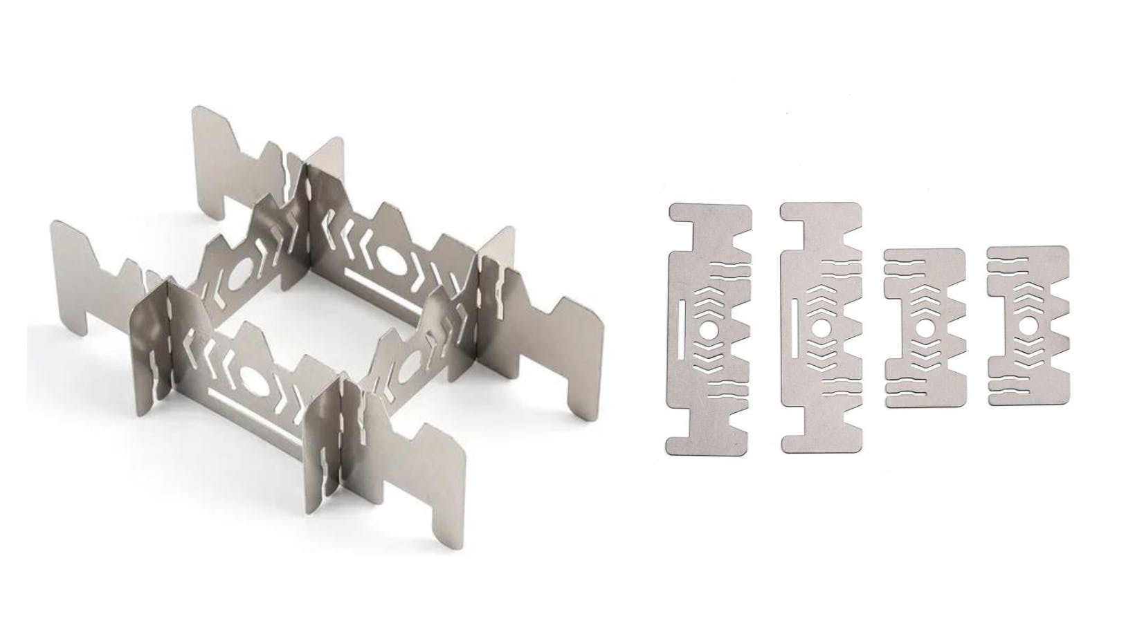 4枚のスタンド板を組み合わせてできる五徳は鍋を支えるだけでなく、アルコールストーブに設置して防風兼五徳として利用できます。