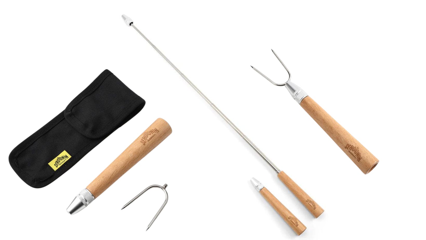 クッカーやケトルを安定して乗せることができる他、五徳をバラしてサイドに設置することでお肉や野菜を刺した串を固定しておくことも可能となります。