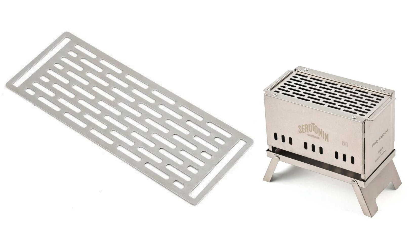 ストーブの上部に取り付けて使用するグリルプレート。お肉や野菜などを炭火や薪で焼くことができ、BBQご飯を楽しむことができます。食品グレードの素材を使用しており、フラットで軽量、持ち運びやすく洗うのも簡単です。