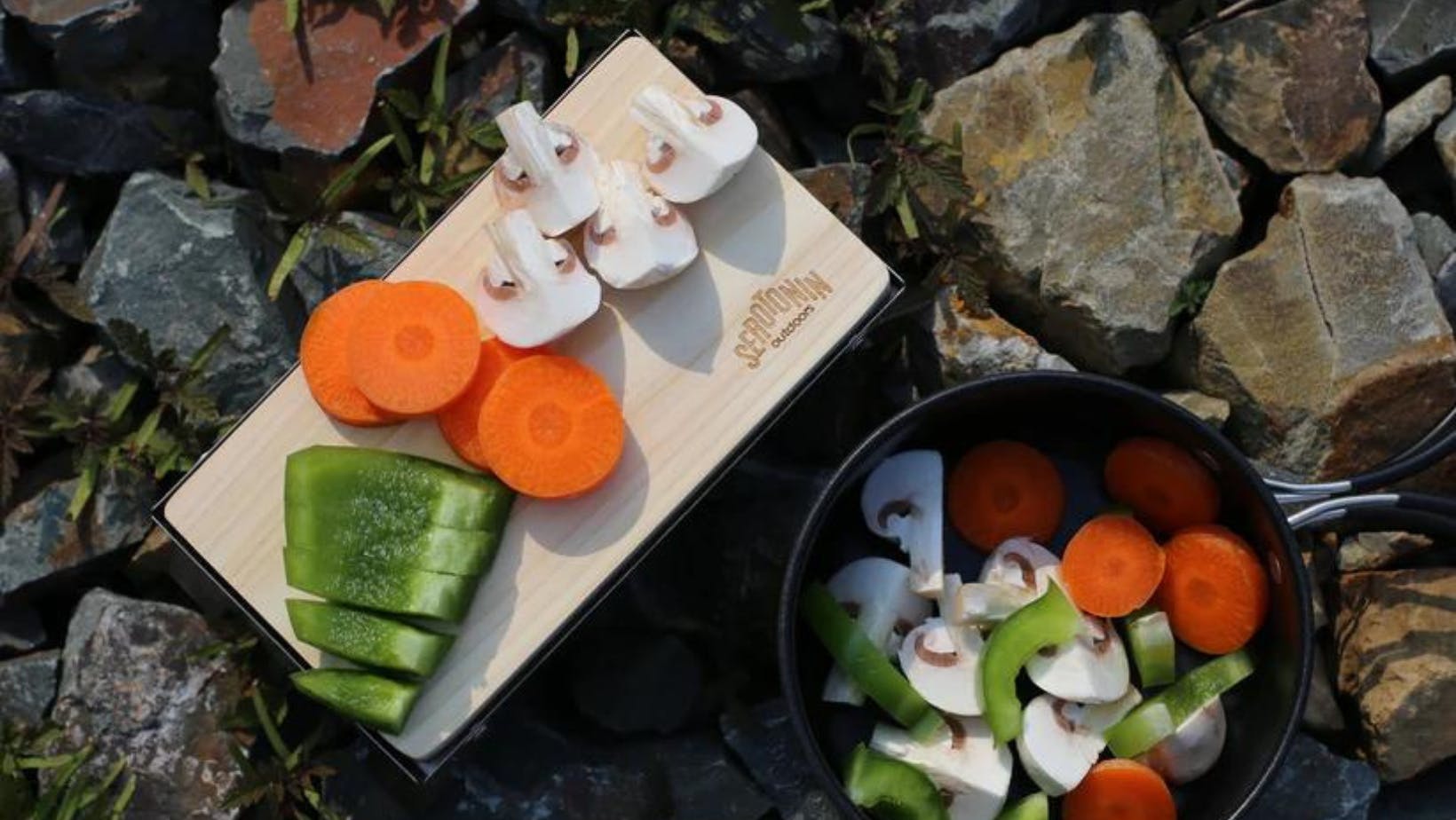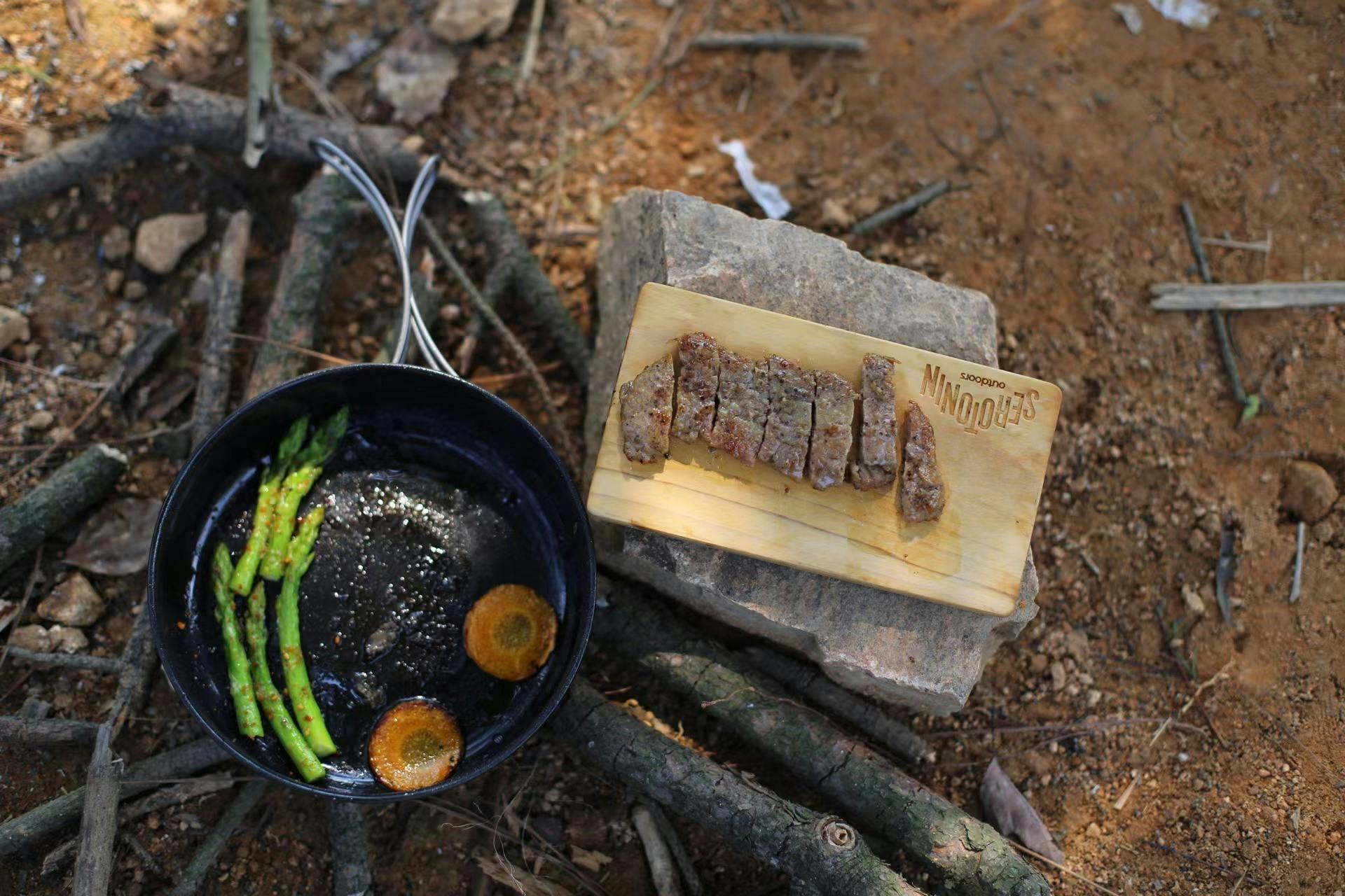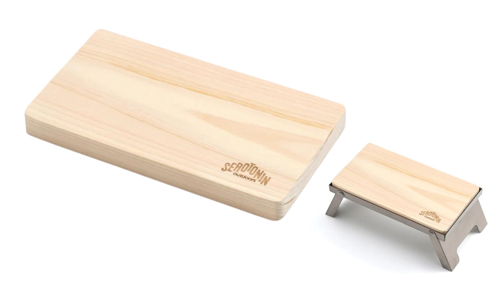 こちらはヒノキ製のまな板で、ストーブ台にハメて使用することができます。大きなお肉や野菜を包丁やナイフでカットし、調理の幅を広げることができます。