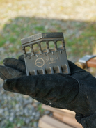 本体は鉄製のため474gと少し重さはあるが、中心部分を肉抜きすることで軽量化を図っている。収納袋付きで持ち運びも安全。