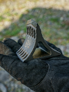 刃の先端を山型にすることによって、薪に刃が食い込みやすい形状に。